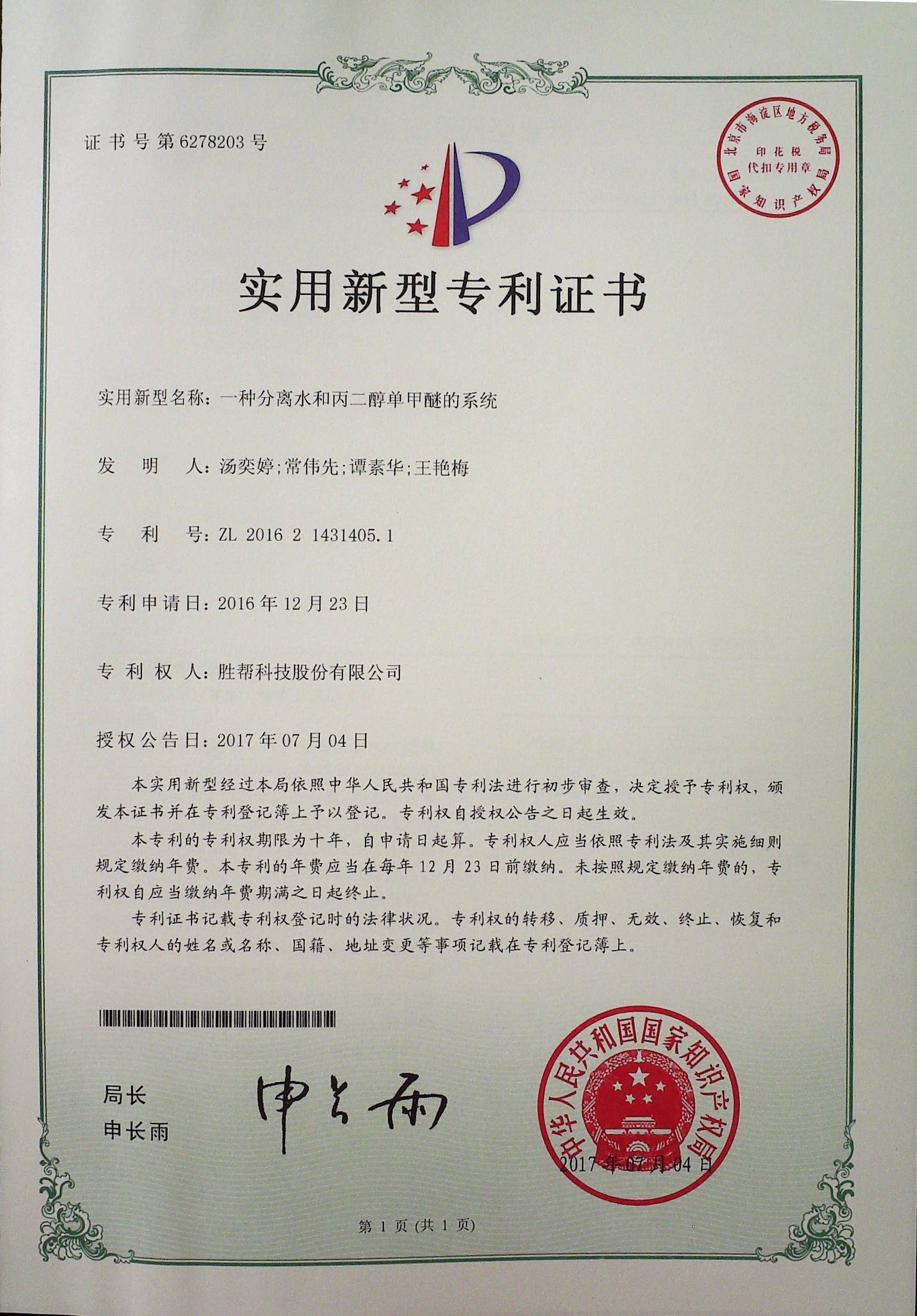 一種分離水和丙二醇單甲醚的系統(tǒng)