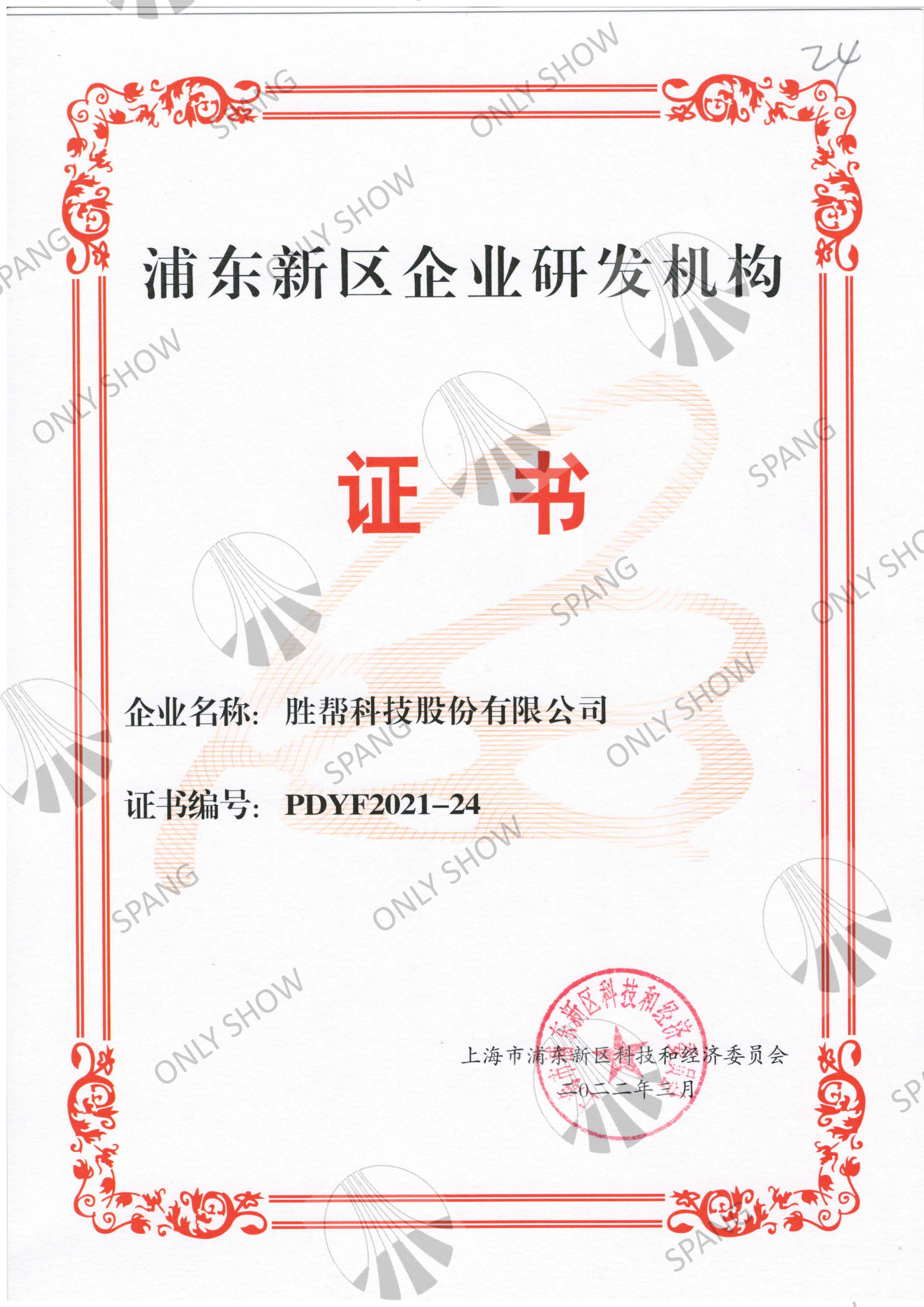 浦東新區(qū)企業(yè)研發(fā)機(jī)構(gòu)證書(shū)