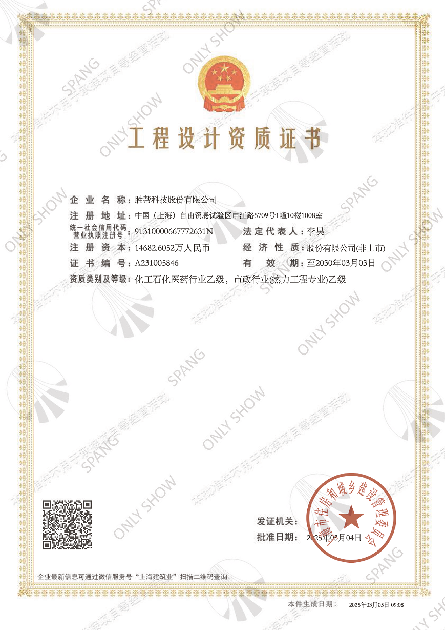 工程設(shè)計(jì)資質(zhì)證書(shū)(化工石化醫(yī)藥行業(yè)乙級(jí),市政行業(yè)(熱力工程專業(yè))乙級(jí))