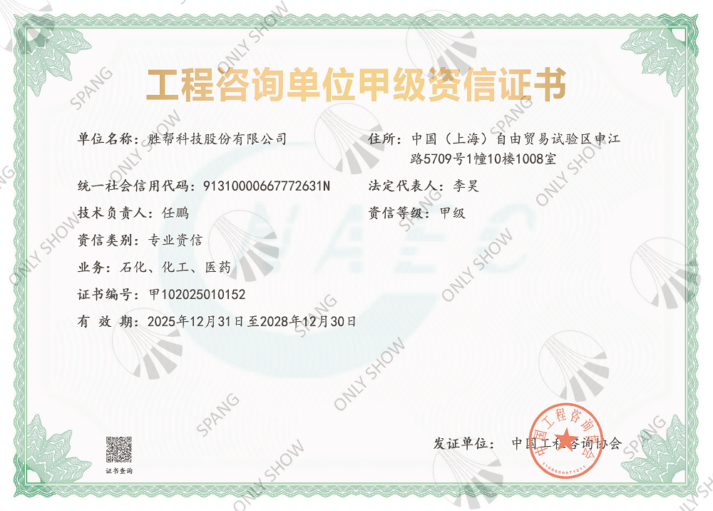 工程設(shè)計(jì)資質(zhì)證書(shū)(化工石化醫(yī)藥行業(yè)(化工工程)專業(yè)甲級(jí))