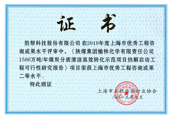 日前從上海市工程咨詢行業(yè)協(xié)會(huì)傳來(lái)喜訊,我司編制的《陜煤集團(tuán)榆林化學(xué)有限責(zé)任公司1500萬(wàn)噸/年煤炭分質(zhì)清潔高效轉(zhuǎn)化示范項(xiàng)目熱解啟動(dòng)工程可行性研究報(bào)告》榮獲2019年度上海市優(yōu)秀工程咨詢成果二等獎(jiǎng)。