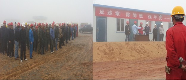 建豐項目周安全例會 ---現(xiàn)場報道(2014年4月12日早7點) 2014年4月12日周六早上7點,是建豐項目安全周例會的日子。和往常一樣,各施工單位,總包單位,監(jiān)理單位,業(yè)主單位均出席參加。會議由安全經(jīng)理馮杰主持,會議共分五個議程:第一項:檢查各施工單位與會人數(shù)與實際上報人數(shù)、入場培訓(xùn)是否一致,并對此進行考核。 與會人員及安全檢查評分…