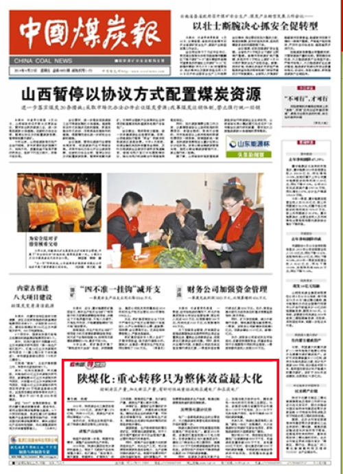 中國(guó)煤炭報(bào):2014年4月25日 第1版陜煤化:重心轉(zhuǎn)移只為整體效益最大化控制老區(qū)產(chǎn)量,加大新區(qū)產(chǎn)量,有針對(duì)性地重組收購(gòu)在建電廠和在役電廠 2013年,陜西煤業(yè)化工集團(tuán)實(shí)現(xiàn)銷售收入1505億元,煤炭產(chǎn)量1.276億噸,利潤(rùn)10.2億元,原煤生產(chǎn)成本同比降幅達(dá)7.27%。練好內(nèi)功,實(shí)現(xiàn)企業(yè)轉(zhuǎn)型升級(jí),成了陜煤化集團(tuán)逆勢(shì)而上的法寶。調(diào)整產(chǎn)品結(jié)構(gòu)轉(zhuǎn)型升級(jí)的第一步是,根據(jù)市場(chǎng)需求,調(diào)整產(chǎn)品結(jié)…