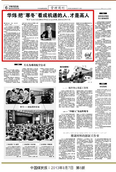 華煒:把“寒冬”看成機遇的人,才是高人“寒冬”讓我們更清醒地審視過去走過的路,看清過去的不足近日,陜西煤業(yè)化工集團董事長、黨委書記華煒接受了本報記者的采訪,就當(dāng)前煤炭行業(yè)形勢發(fā)表了看法。記者:您怎樣看待現(xiàn)在煤炭市場的蕭條?華煒:煤炭是我國能源的主體,煤炭工業(yè)的持續(xù)穩(wěn)定發(fā)展對國民經(jīng)濟的發(fā)展有著直接且重要的影響。我國煤炭行業(yè)經(jīng)過幾十年發(fā)展,一路走來很不容…
