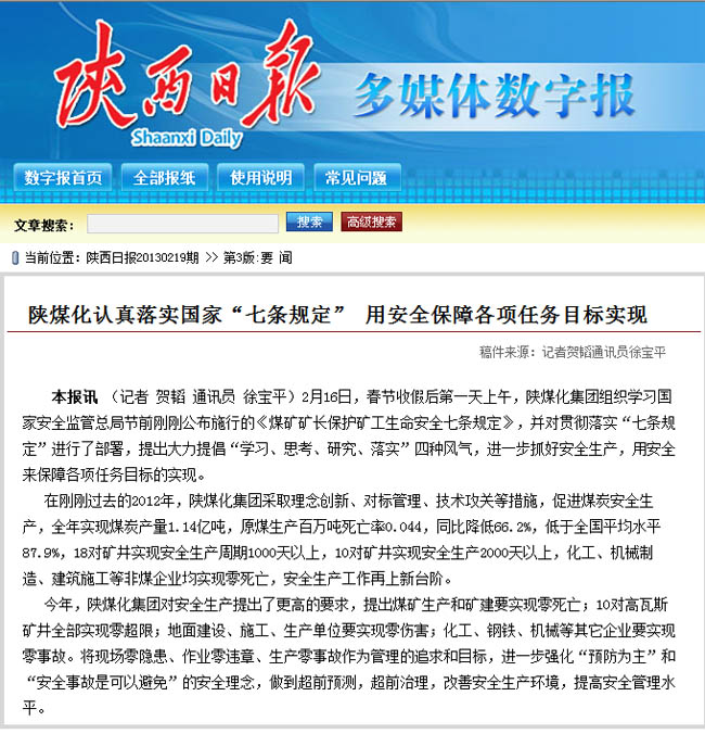 陜西日?qǐng)?bào)2013年2月19日第三版 省國(guó)資委網(wǎng)站鏈接 http://www.sxgz.gov.cn/admin/pub_newsshow.asp?id=1005615&chid=100196