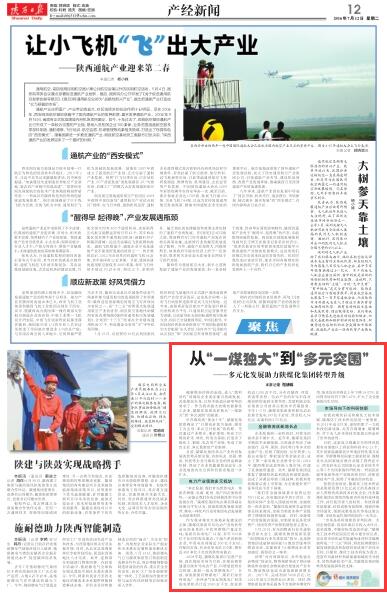 陜西日報:2016年7月12日 第12版 從“一煤獨大”到“多元突圍” ——多元化發(fā)展助力陜煤化集團轉(zhuǎn)型升級 本報記者 程靖峰 隨著煤炭價格的走低,進入“微利時代”的煤炭企業(yè)要實現(xiàn)可持續(xù)發(fā)展,光靠煤炭本身,已經(jīng)不能適應(yīng)新形勢的要求了。作為我省最大的煤炭能源化工企業(yè),陜煤化集團也開始從“一煤獨大”到“多元突圍”的探索。 早在煤炭的“黃金十年”,陜煤化集…