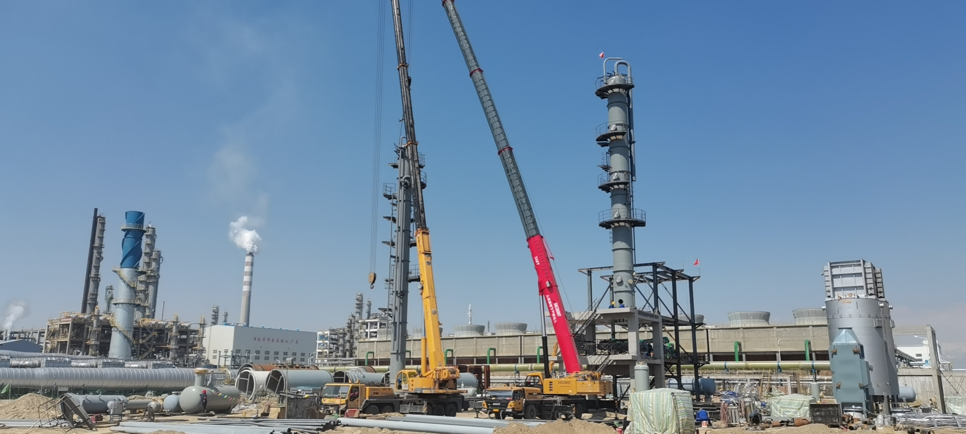 2021年4月28日,勝幫科技總承包項(xiàng)目——伊犁新天煤化工有限責(zé)任公司重芳烴多元烴深加工項(xiàng)目,經(jīng)過參建人員20多天的努力奮戰(zhàn),設(shè)備吊裝、鋼結(jié)構(gòu)安裝攻堅(jiān)順利完工,為后續(xù)管道安裝、電儀安裝創(chuàng)造出作業(yè)面,進(jìn)入全面沖刺階段。