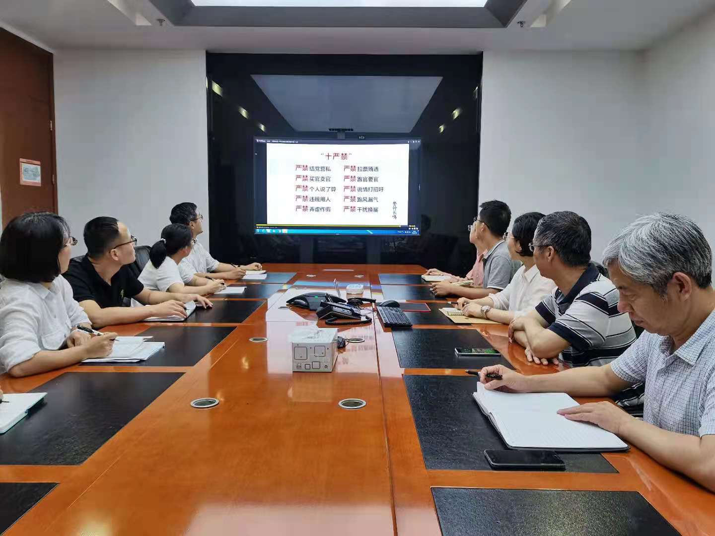 為進一步嚴肅換屆紀律,筑牢干部廉潔自律的思想道德防線。8月16日,勝幫科技黨委組織公司領(lǐng)導班子成員、中層副職以上黨員干部集中觀看了由中共中央組織部干部監(jiān)督局等聯(lián)合制作的專題警示教育片《警鐘長鳴—嚴肅換屆紀律教育警示錄》,并發(fā)放了《“十嚴禁”換屆紀律要求》提醒卡。