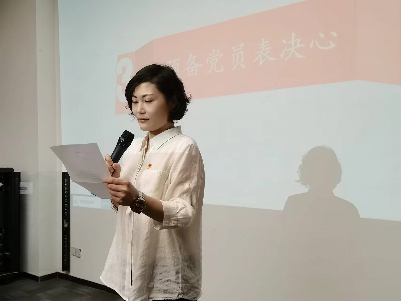 在公司第二支部書記的帶領(lǐng)下,四名預(yù)備黨員列隊整齊,面對鮮紅的黨旗下舉起右拳,莊嚴(yán)宣誓。八十個字的誓詞,字字鏗鏘,句句千鈞。宣誓完畢后,葉蘭同志代表預(yù)備黨員進(jìn)行了表態(tài)發(fā)言:“我們將在今后的工作學(xué)習(xí)中,不斷強(qiáng)化黨性鍛煉,扎實做好本職工作,爭做對黨忠誠、奮發(fā)有為的有志青年,用實際行動為黨旗增光添彩?!?