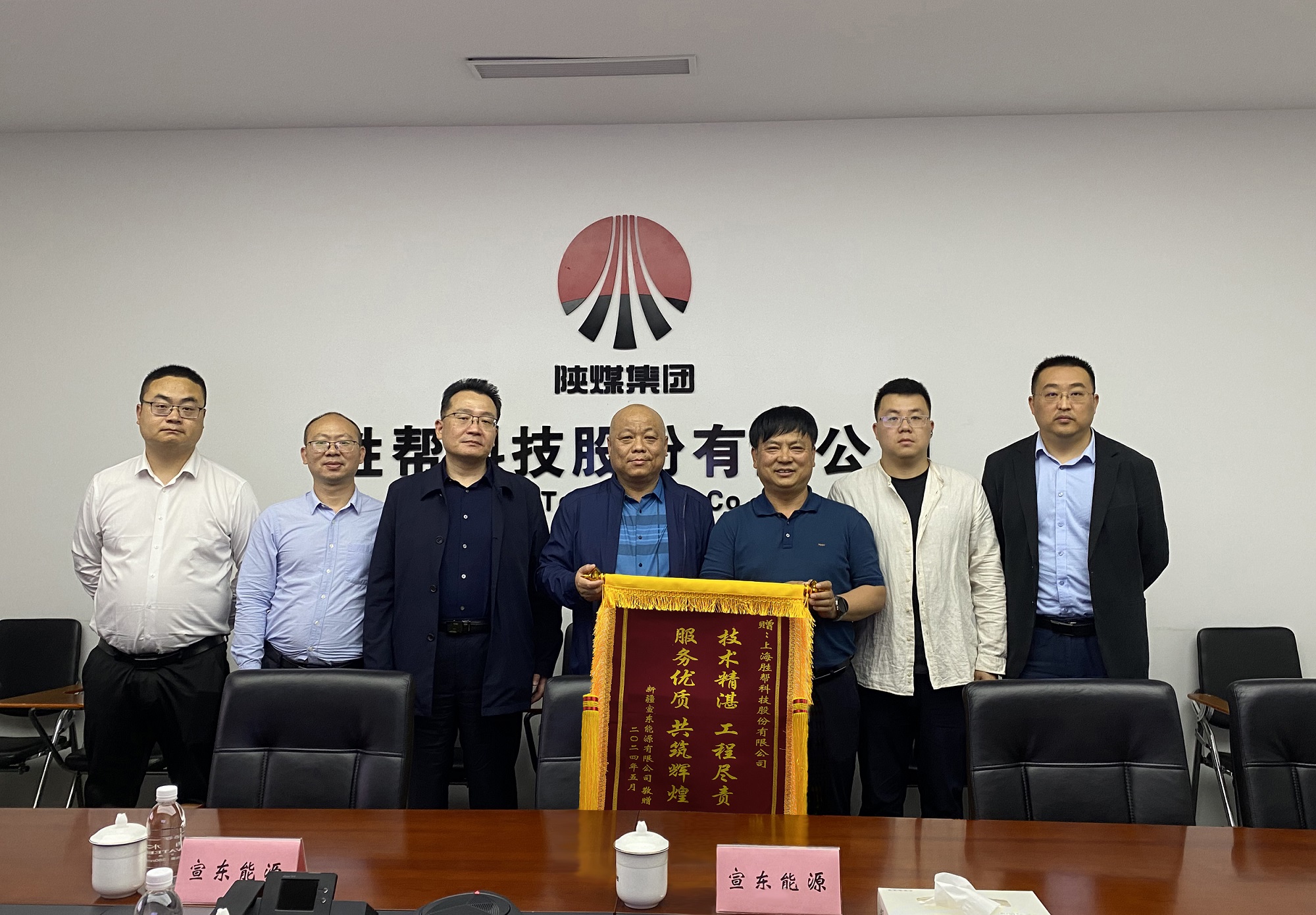 會(huì)議的最后,由林濤海代表新疆宣東能源向勝幫科技贈(zèng)送了錦旗。此次交流座談,不僅加深了雙方的相互了解和信任,更為未來(lái)的深度合作奠定了堅(jiān)實(shí)的基礎(chǔ)。