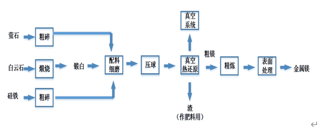 根據(jù)采用的還原設(shè)備不同,硅熱法主要可分為皮江法、馬格內(nèi)姆法、波爾扎諾法和MTMP法。由于皮江法在我國(guó)被廣泛使用,因此本文主要介紹該方法。