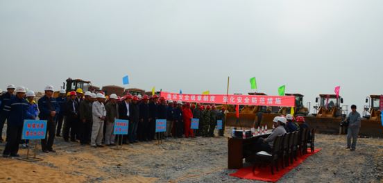 2013年3月31日上午10:00,內(nèi)蒙古建豐化工有限責(zé)任公司在項(xiàng)目現(xiàn)場(chǎng)舉辦了該項(xiàng)目廠區(qū)道路施工開(kāi)工典禮。建豐公司副總經(jīng)理樊甄,勝幫公司建豐項(xiàng)目現(xiàn)場(chǎng)施工經(jīng)理李勇,陜西誠(chéng)信監(jiān)理公司建豐項(xiàng)目總監(jiān)任號(hào)戰(zhàn)及道路工程施工單位澄合公司、銅川公司的現(xiàn)場(chǎng)項(xiàng)目經(jīng)理出席了開(kāi)工儀式。