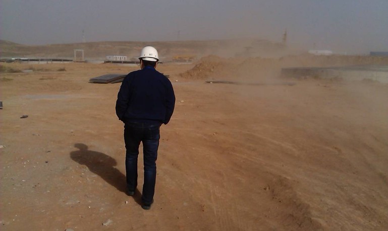 早上來到工地時,正好遇到每天準時到來的沙塵暴,錢經(jīng)理不畏-6℃的嚴寒,風沙中行走。