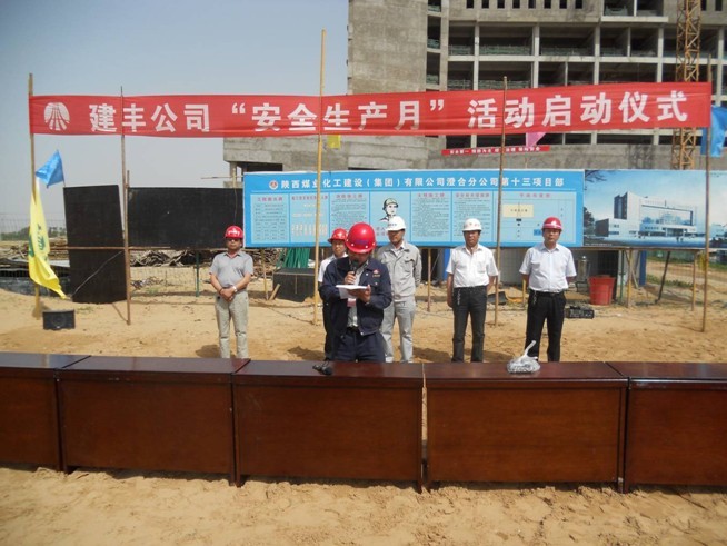 此次啟動儀式標(biāo)志著建豐項目2013年“安全生產(chǎn)月”活動的序幕已經(jīng)拉開。項目部要求以 “安全生產(chǎn)月”活動為契機,樹立憂患意識,積極開展隱患排查,加大對重大危險源和重要環(huán)境因素的治理力度,全面提升公司安全管理水平。