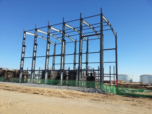 902單元壓縮機(jī)廠房基礎(chǔ)澆筑完畢,上部鋼結(jié)構(gòu)框架完成50%,現(xiàn)已停工