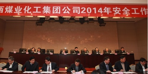 會上,集團公司總經(jīng)理楊照乾代表集團公司與所屬板塊黨政主要領(lǐng)導(dǎo)簽訂了安全責任狀,陜西煤業(yè)股份公司總經(jīng)理宋老虎與股份公司所屬各單位黨政主要領(lǐng)導(dǎo)簽訂安全責任狀,集團公司副總經(jīng)理尤西蒂與化工板塊所屬各單位簽訂安全責任狀。對2013年度安全生產(chǎn)先進集體、先進工作者、實現(xiàn)安全生產(chǎn)年單位、安全生產(chǎn)(質(zhì)量)標準化先進單位先進煤礦及實現(xiàn)安全生產(chǎn)2000天以上煤礦和2013年度國家級安全質(zhì)量標準化礦井進行了表彰。銅川礦業(yè)公司、澄合礦業(yè)公司、陜焦公司、建設(shè)集團、陜鋼集團五家單位代表在會上進行了表態(tài)發(fā)言。