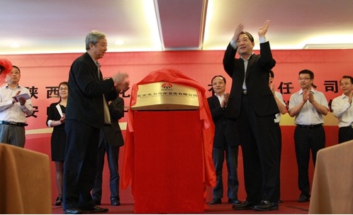 陜煤化集團(tuán)公司董事長楊照乾、湖南省經(jīng)信委主任謝超英為長安電力華中發(fā)電有限公司揭牌