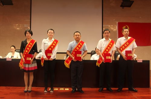 優(yōu)秀黨務(wù)工作者代表上臺領(lǐng)獎