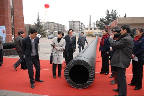 與會人員觀摩了韓城礦務局支護用品廠生產目前國內最先進的無縫正壓風筒