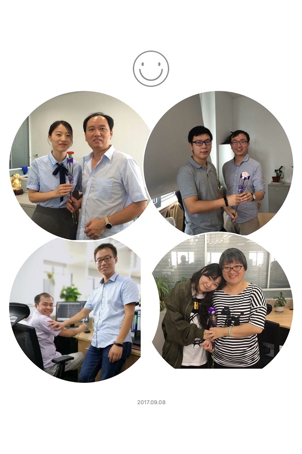 勝幫科技本著“以人為本,服務(wù)社會(huì)”的理念,值此教師節(jié)到來(lái)之際,組織了“獻(xiàn)鮮花,謝師恩”主題活動(dòng),以此表達(dá)公司及各位領(lǐng)導(dǎo)對(duì)師父?jìng)冃量喙ぷ鞯母兄x。同時(shí),徒弟們也借此機(jī)會(huì)表達(dá)了自己的感恩之情。