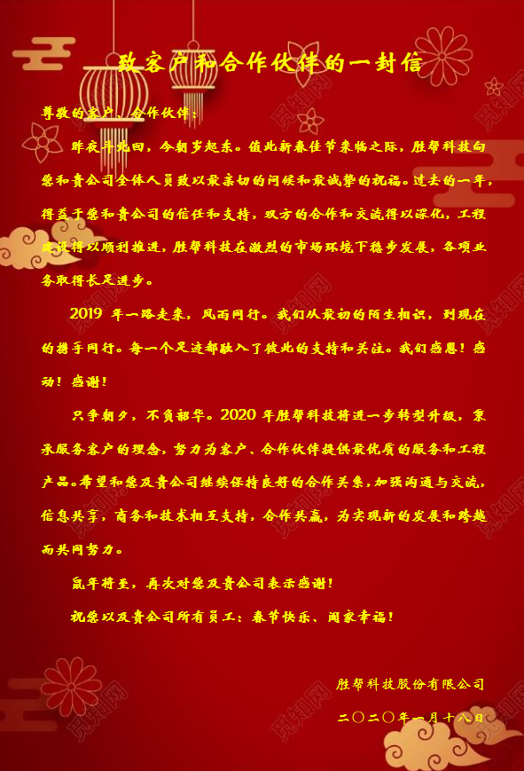 致客戶和合作伙伴的一封信